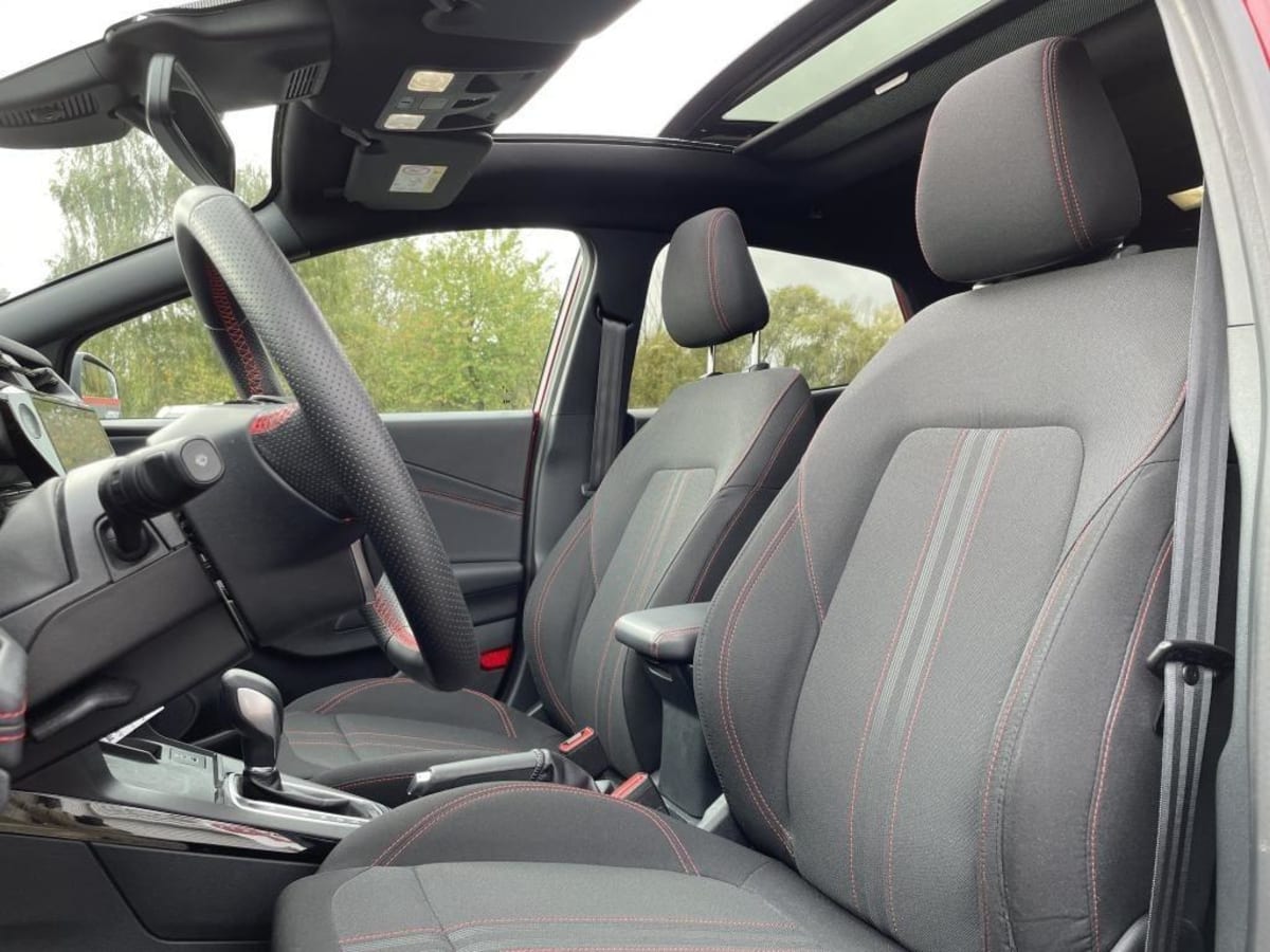 sièges av en tissu avec surpiqûres rouges