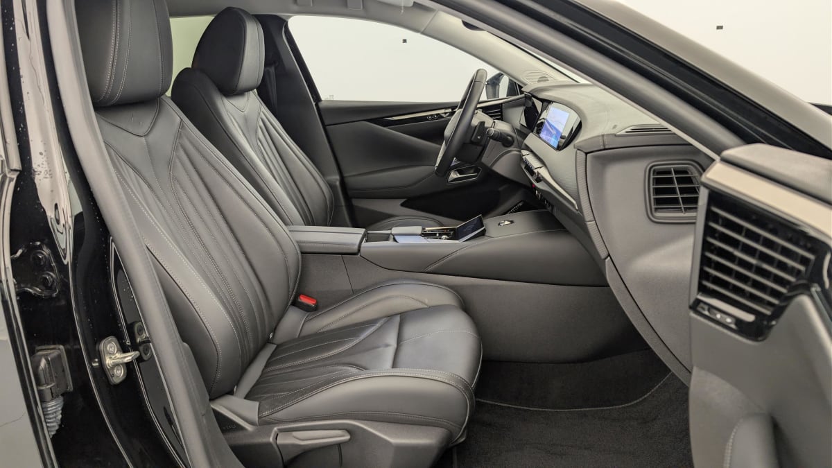 intérieur cuir grainé noir basalte et toile ds : ciel de pavillon clair décors de panneaux de porte chrome guilloché volant en cuir fleur mistral console centrale en toile ds mistral planche de bord en toile ds noir basalte façon écaille panneaux de portes en toile ds noir basalte façon écaille sellerie en cuir grainé noir basalte et toile ds