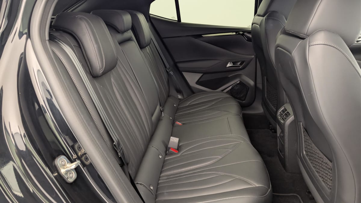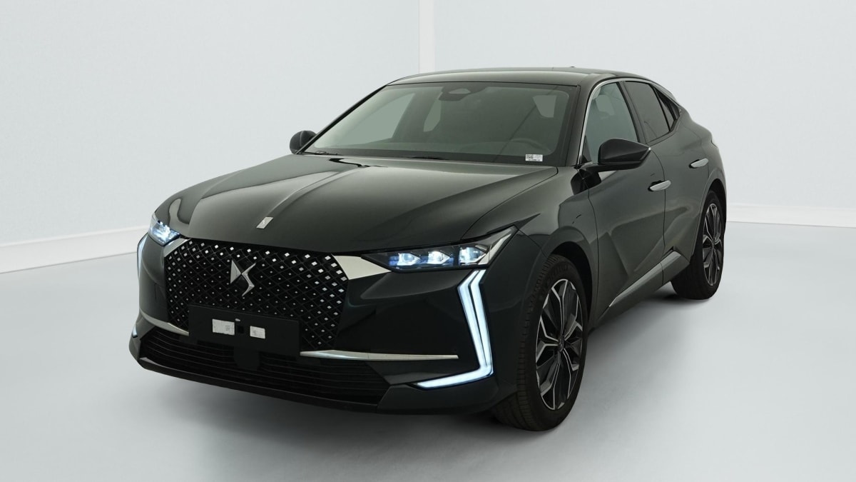 intérieur cuir grainé noir basalte et toile ds : ciel de pavillon clair décors de panneaux de porte chrome guilloché volant en cuir fleur mistral console centrale en toile ds mistral planche de bord en toile ds noir basalte façon écaille panneaux de portes en toile ds noir basalte façon écaille sellerie en cuir grainé noir basalte et toile ds