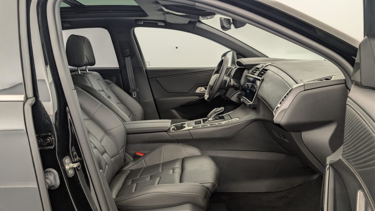 intérieur cuir nappa noir basalte : panneaux de portes en cuir nappa mistral planche de bord en cuir nappa mistral console centrale en cuir nappa mistral volant cuir fleur avec coussin d'airbag en cuir sellerie cuir nappa confection bracelet et toile ds mistral ciel de pavillon sombre : +0.00
