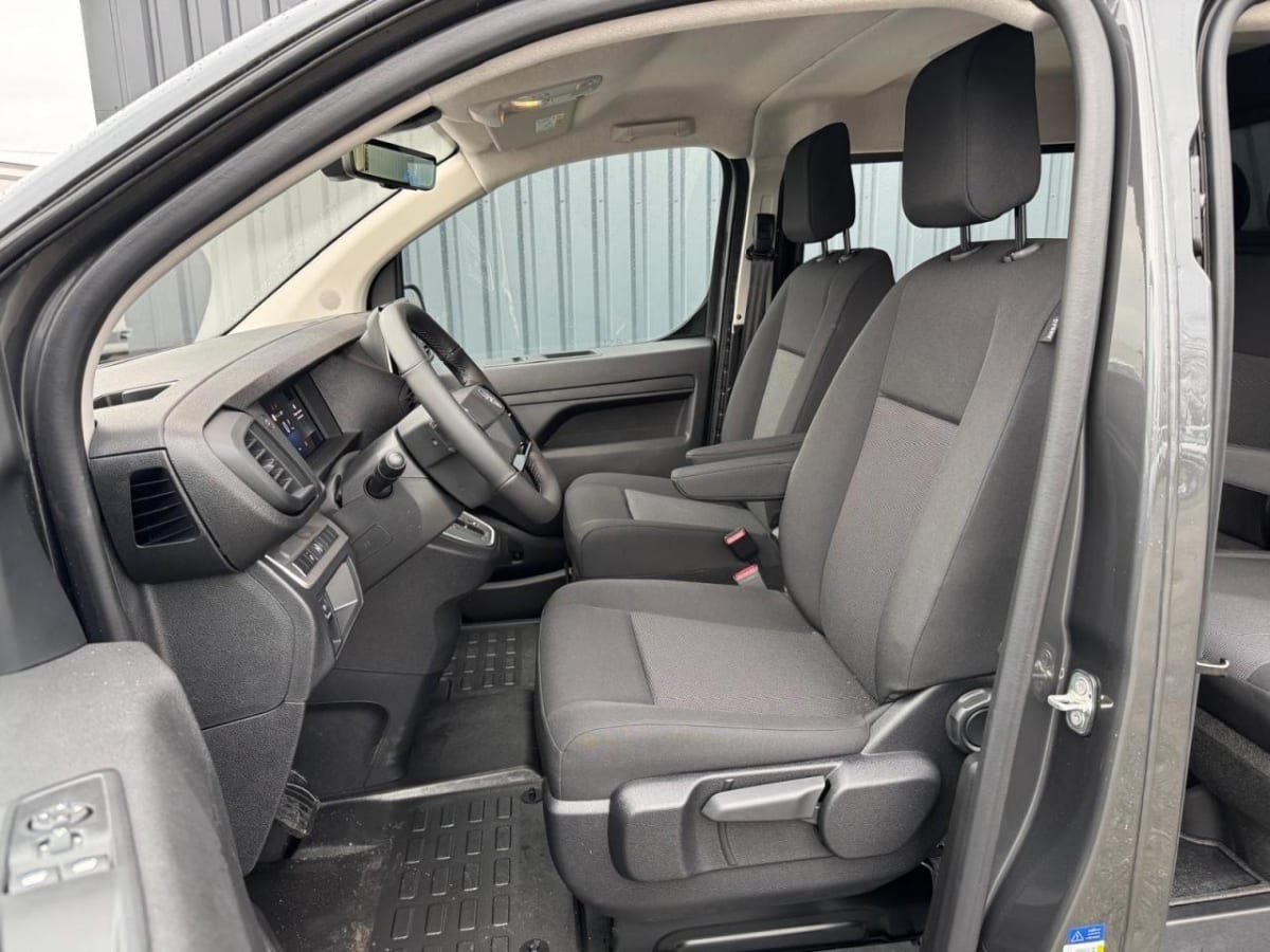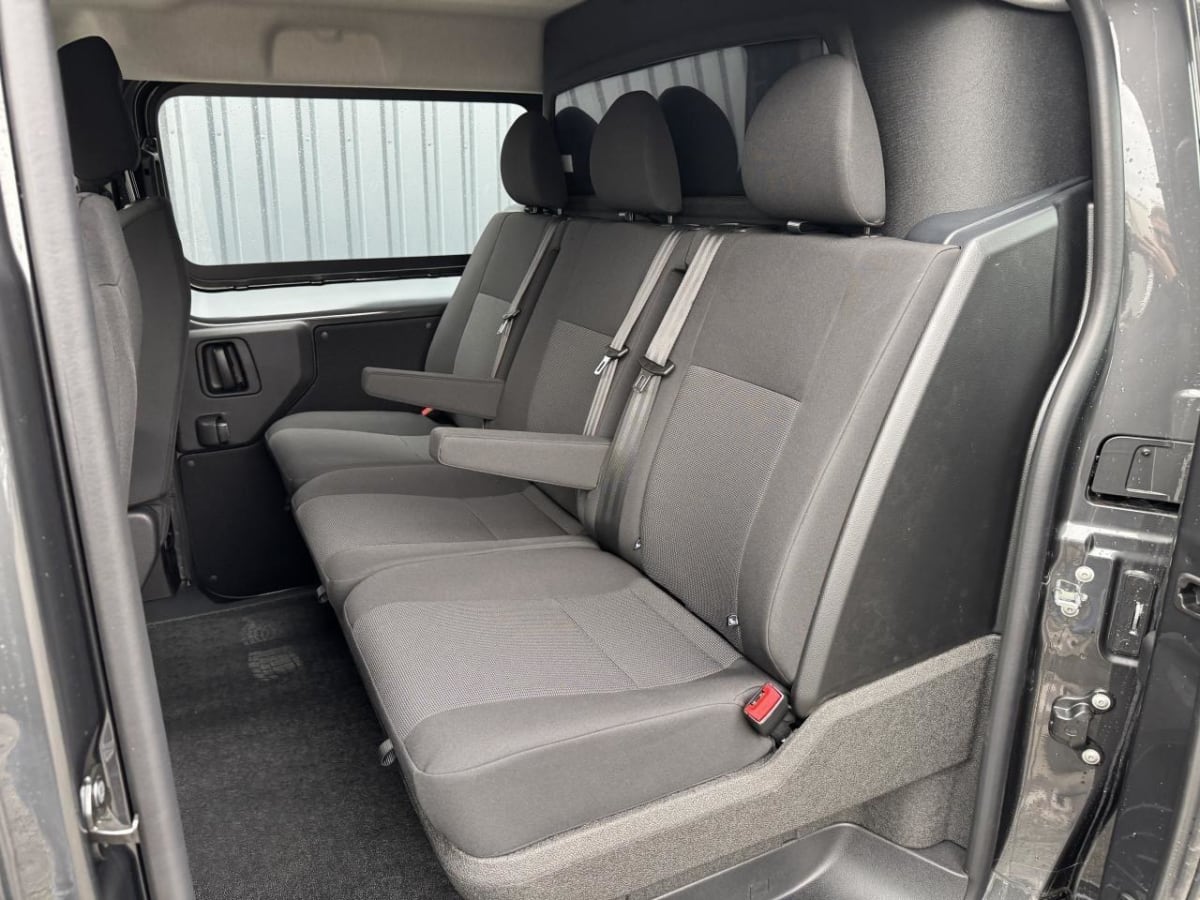 banquette fixe 3 places en rang 2 avec appui-tête réglables et 2 accoudoirs, position unique avec coffre de rangement amovible sous assises gauche et centrale (accessible depuis habitacle) et avec zone pour charge longue sous assise droite (accessible par la zone de chargement)