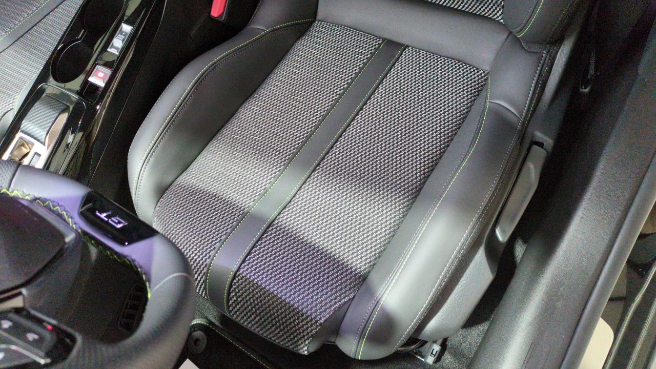 Volant compact cuir fleur avec commandes multimédia intégrées et badge GT