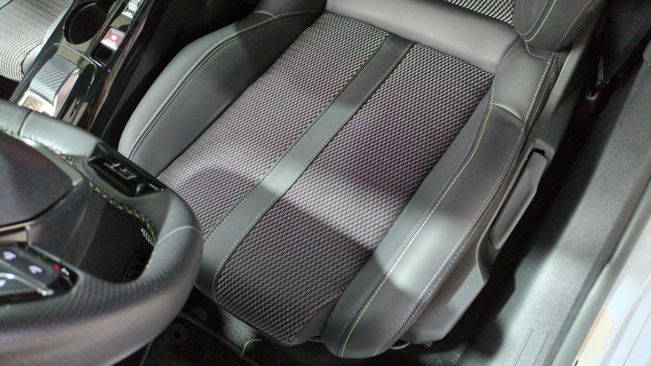 Volant compact cuir fleur avec commandes multimédia intégrées et badge GT
