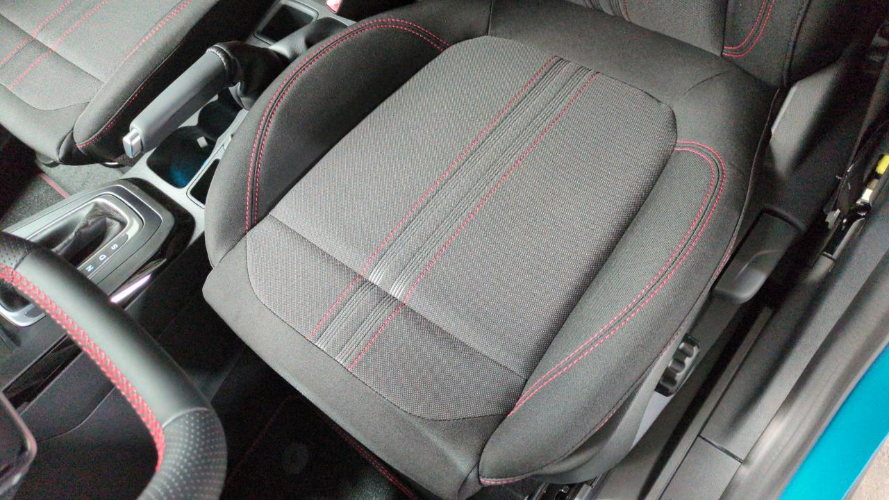 sièges av en tissu avec surpiqûres rouges