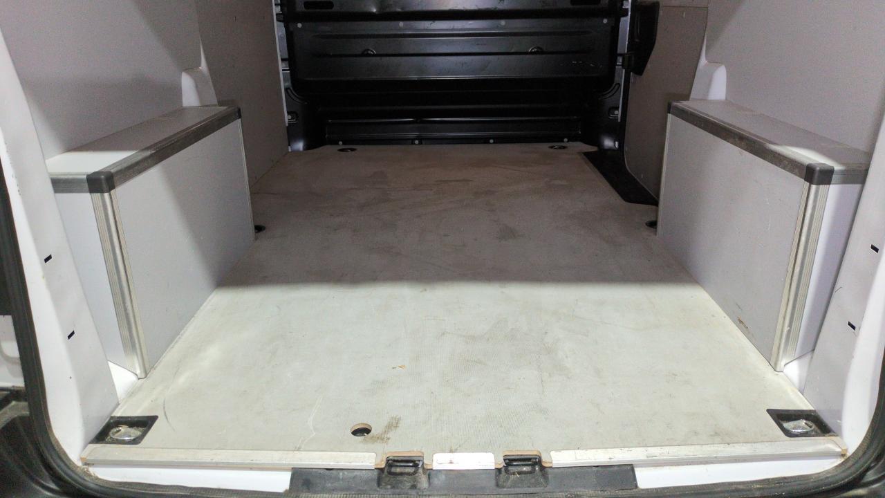 plancher bois anti-dérapant 9 mm avec baguette aluminium + habillages latéraux et coffrage des passages de roue en bois revêtu 6 mm